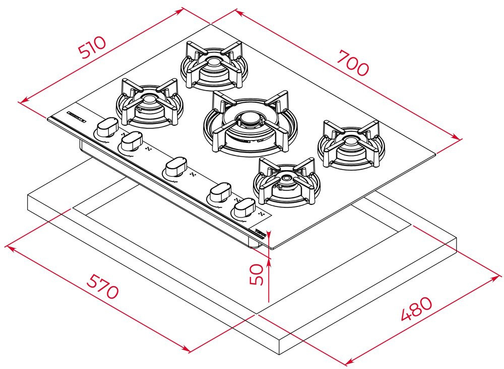 Розміри для монтажу (ШхГ) - 570x480 мм,