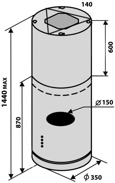 Витяжка VENTOLUX Isola Cilindro 35 BK 1200 ST MM