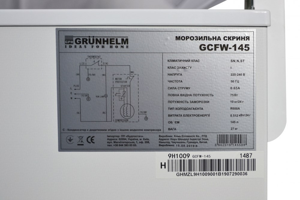 Морозильний лар Grunhelm GCFW-145
