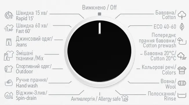 Управління - поворотна ручка + кнопки,