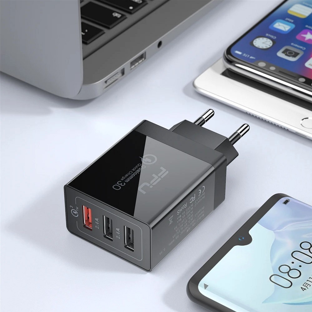 Мережевий зарядний пристрій Essager Fangbo QC3.0 3U (QC+Dual 2.4A) Charging Head EU Black (ECTQC3-FBB01)