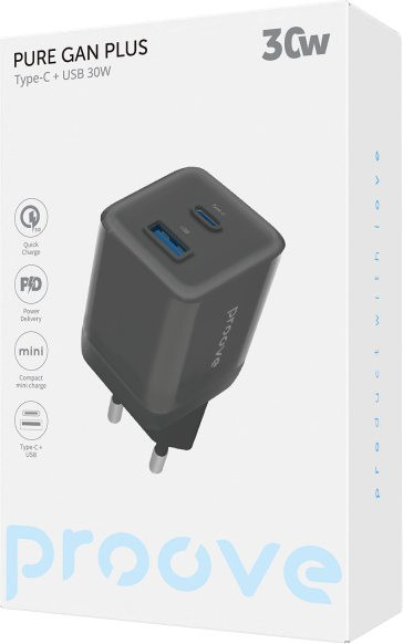 Мережевий зарядний пристрій Proove Pure GaN Plus 30W Type-C + USB black (WCPU30111201)