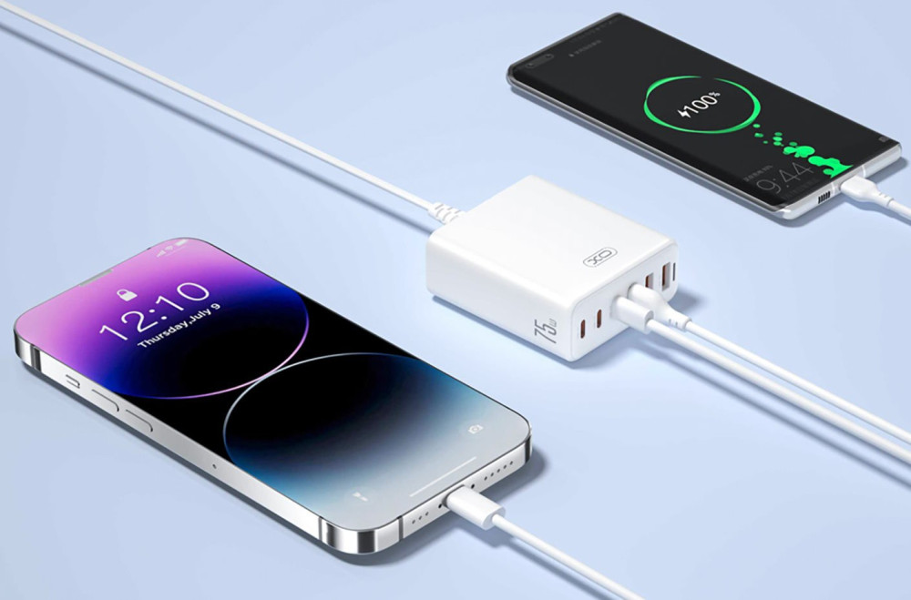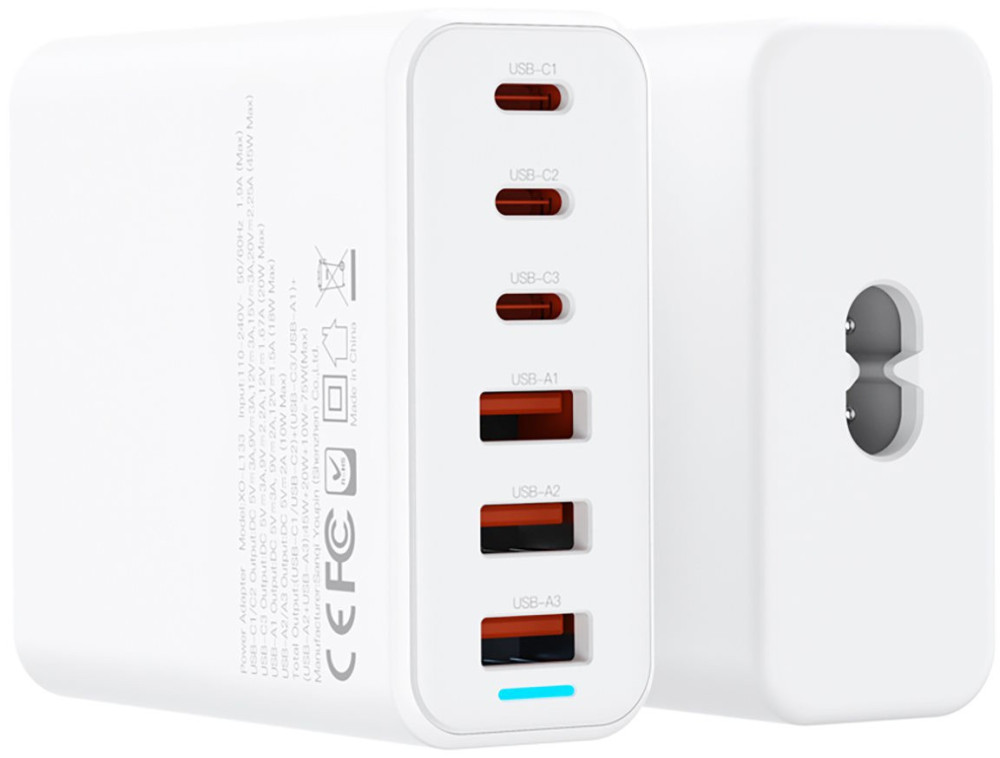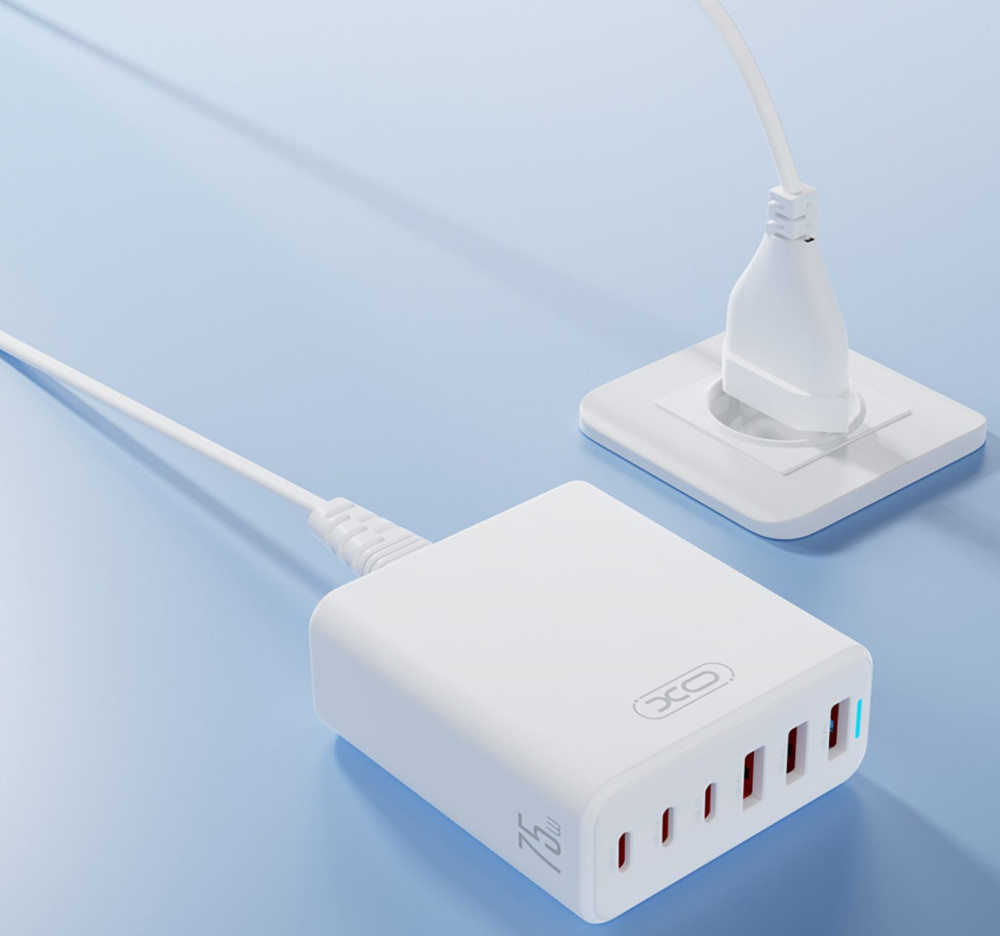 Зарядний пристрій XO L133 75W GaN 3A+3C 6 портів Desktop Fast Charger with 1.5M Power Cord