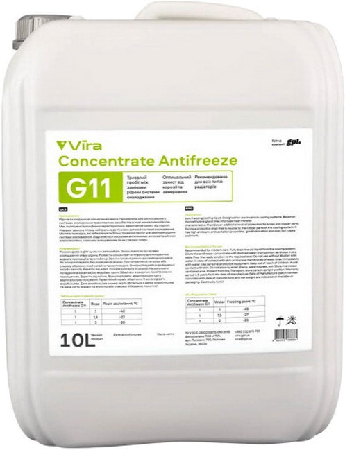Охлаждающая жидкость VIRA Concentrate Antifreeze G11 Green 10 л (VI4002)