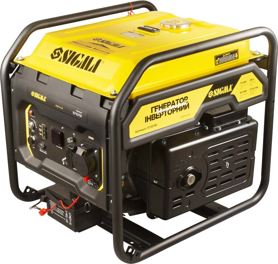 Генератор інверторний SIGMA 7.58.0кВт, однофзний, ручнийелектро запуск, з виведенням під АВР (5710781)