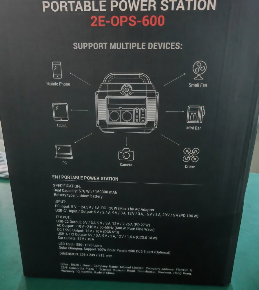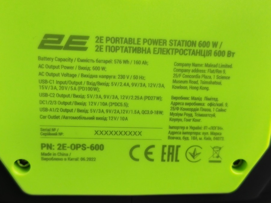 Акумулятор портативний літій-іонний, електростанція 2Е, 600 Вт (2E-OPS-600)