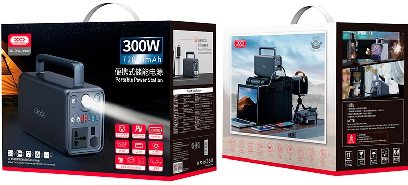 Портативна зарядна станція XO-PSA-300W потужністю 300W, (230Wh 72000mAh), Output:1AC+3DC+2USB+1Type-C, Black