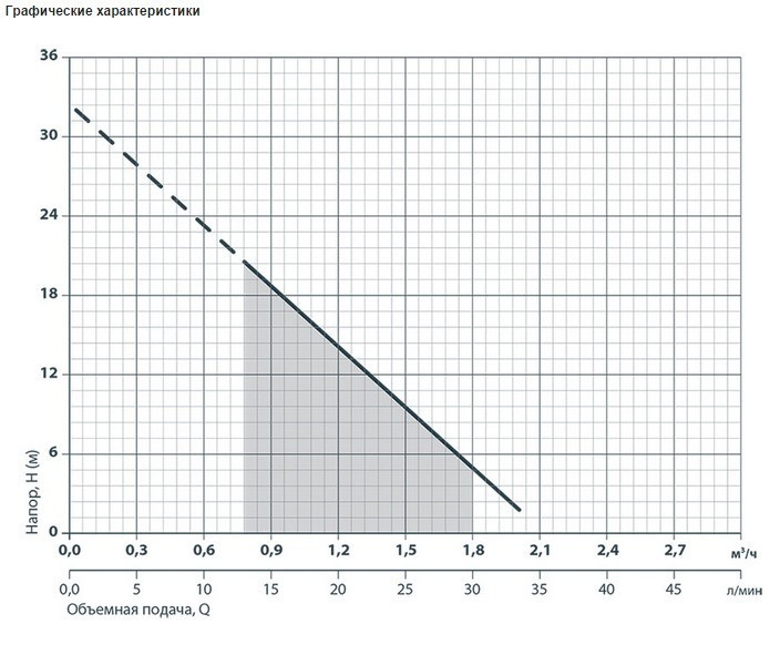Макс. напор - 32 м / максимальный /,
