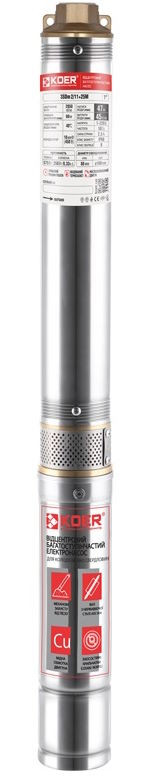 Скважинный центробежный насос с пультом KOER 3SDM 215 (Н=64м, Q=2,7м3, P=370Вт, кабель 1м, 1)