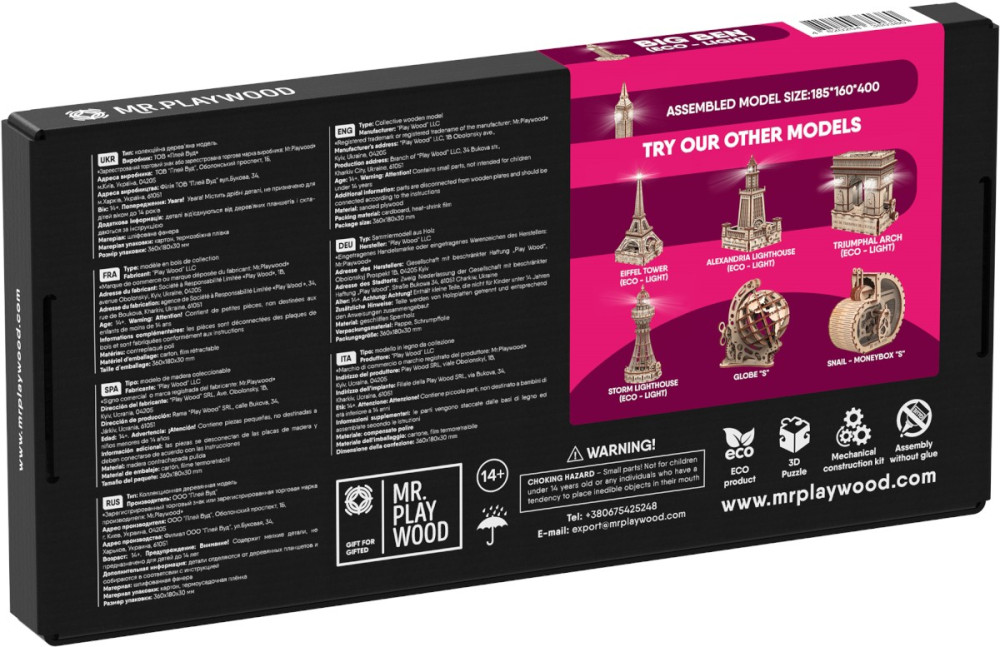 3D пазл Mr. PlayWood Big Ben Eco Light 10206