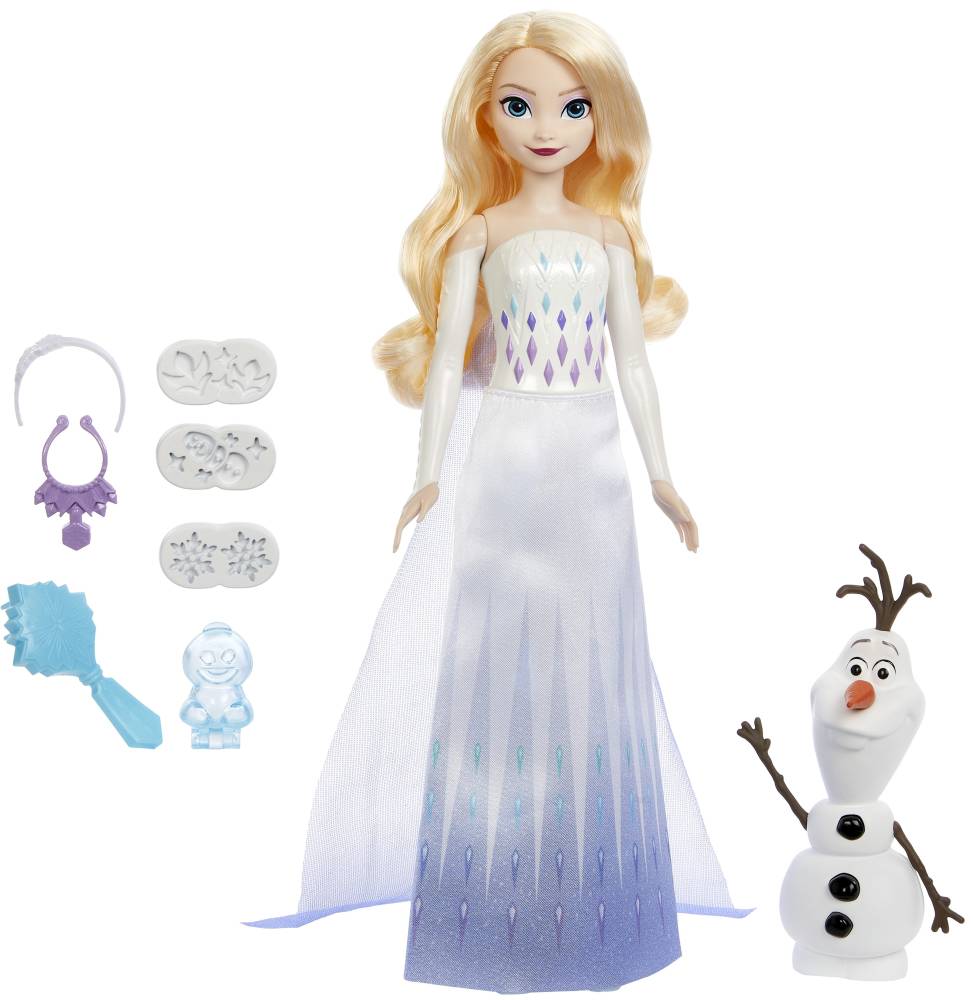 В комплекте с куклой - фигурка Олафа, бусы, обруч, расческа, 4 штампа,