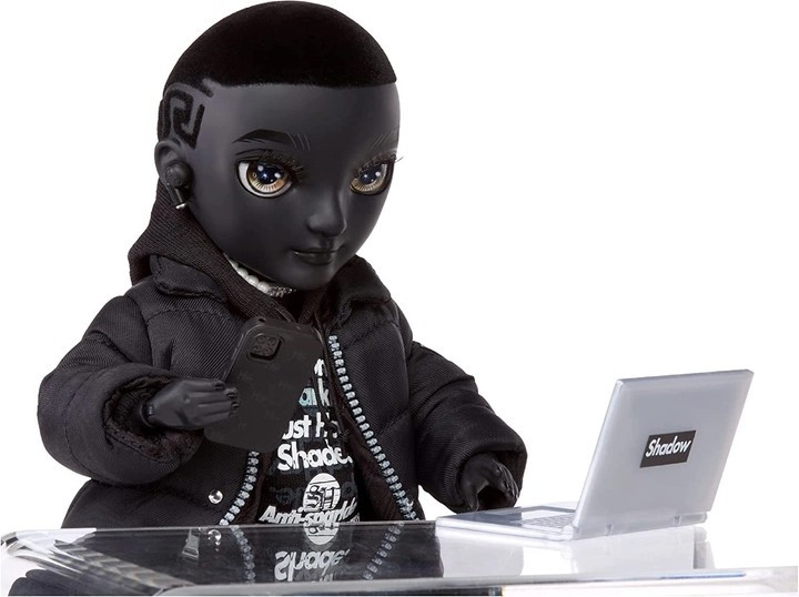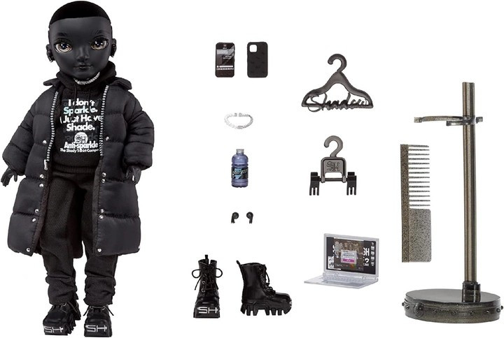 В комплекте с куклой - подставка, расческа, вешалки, ноутбук, смартфон, бутылочка, наушники,