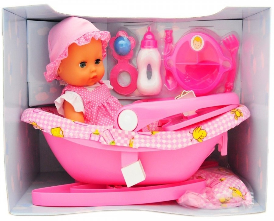 В комплекте с куклой - мебель и декорации / кресло, стульчик, переноска / ванночка, посуда для кормления, погремушка,