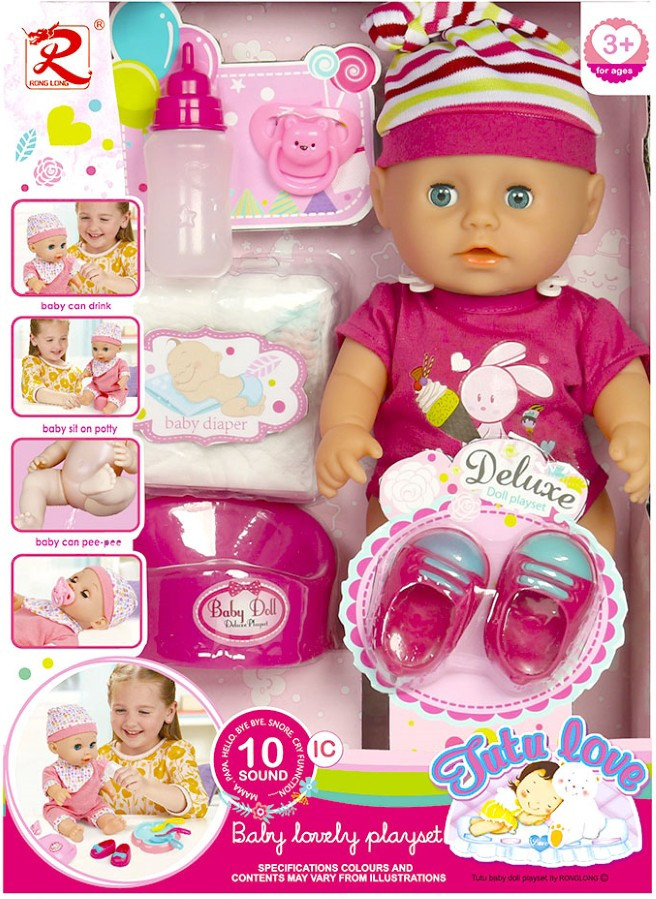 Возможности куклы - закрывает глаза издает звуки / поет пьет, писает,
