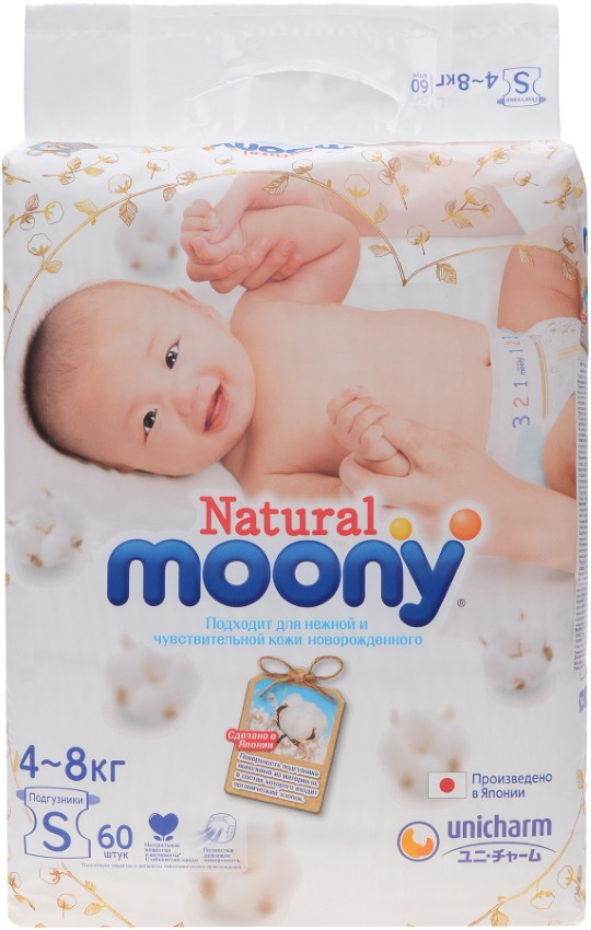 Подгузники Moony Natural Diapers S / 60 pcs
