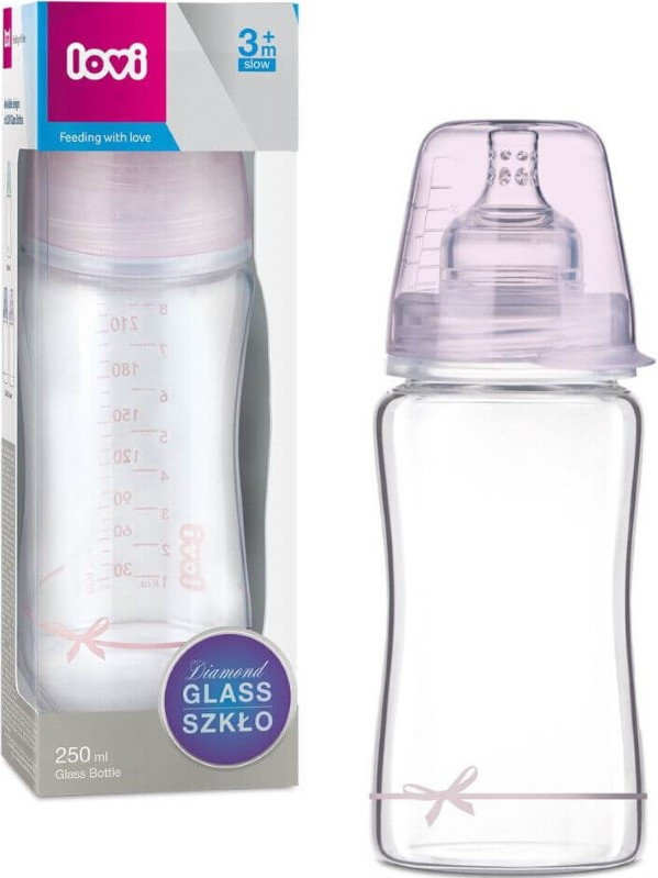 Пляшечка для годування Lovi Diamond Glass Baby Shower скляна 250 мл Рожева (74204girl)