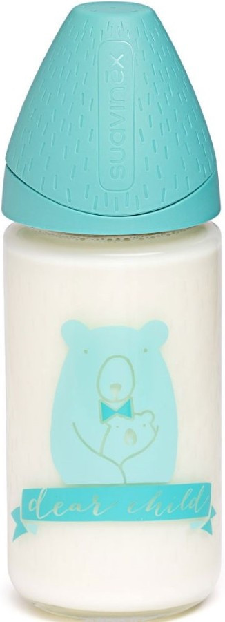 Пляшка для годування Suavinex Сенс життя скляна, 240 м бірюзова з футляром (303004)
