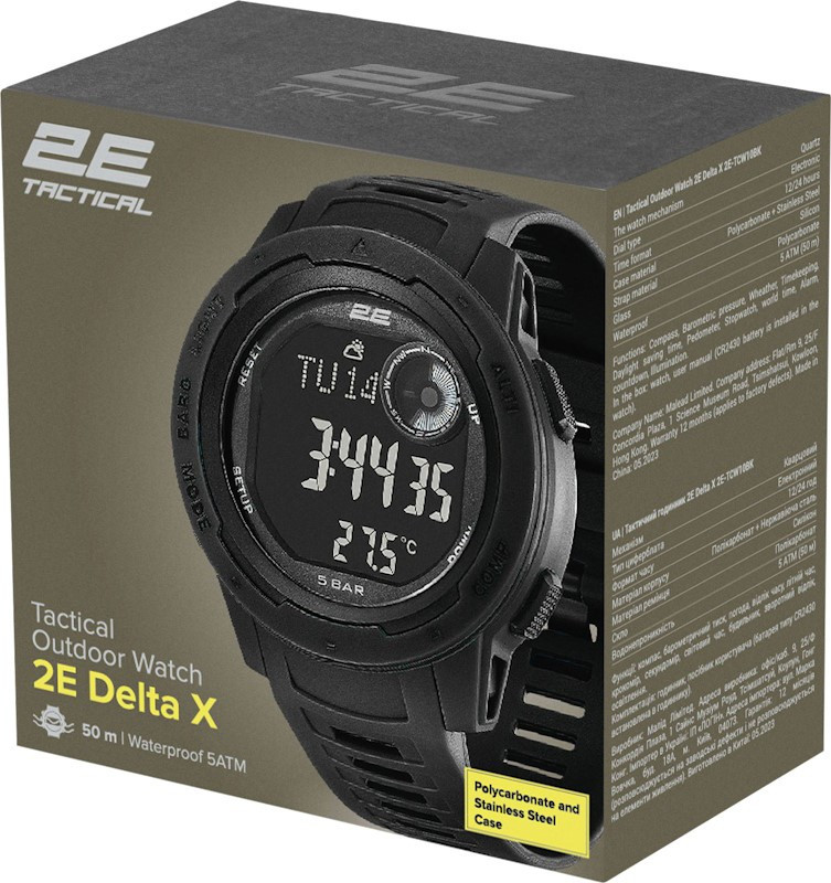 УЦІНКА Тактичний годинник 2E Delta X Black з компасом та крокоміром