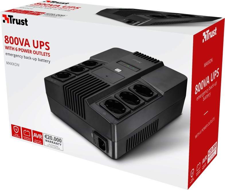 ДБЖ безперервної дії (Online) Trust Maxxon 800VA UPS with 6 standard wall power outlets BLACK 23326