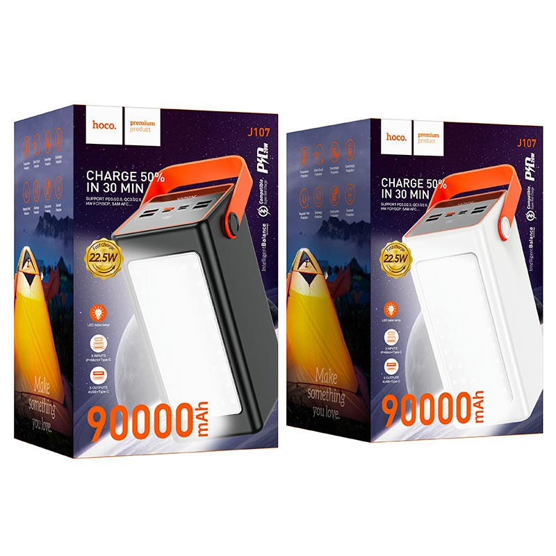 Портативний акумулятор Hoco J107 Super 90000 mAh зовнішня батарея з лампою