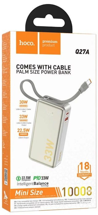Акумулятор портативний HOCO Q27a power bank 10000 mAh 33w інтегрований кабель