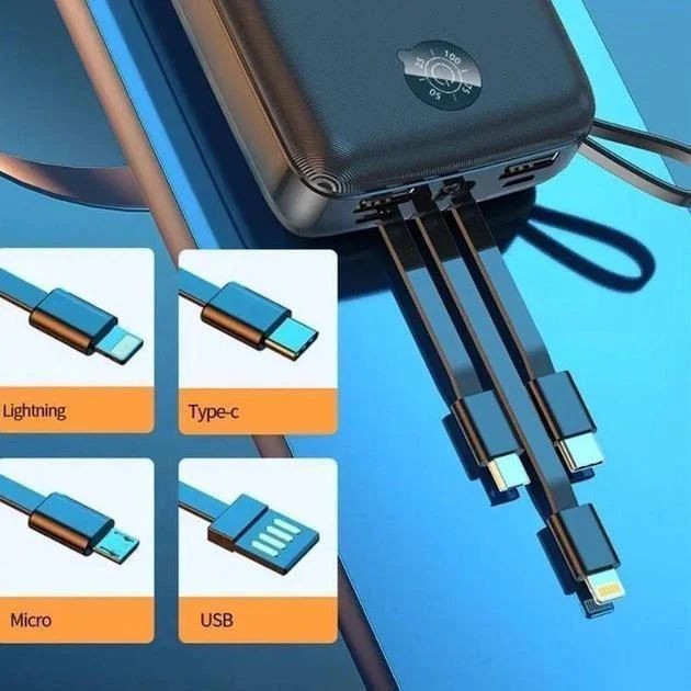 Комплектные провода (адаптеры) - microUSB / встроенный + комплектный / USB C / встроенный / Apple Lightning / встроенный / USB A,