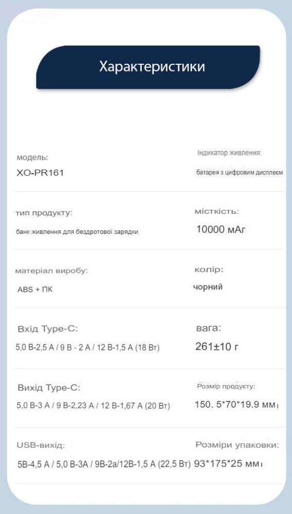 Мощность заряда powerbank'а - 18 Вт,