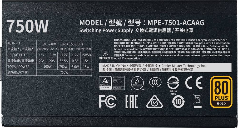 Блок питания Cooler Master MWE Gold V2 Modular MPE-7501-AFAAG