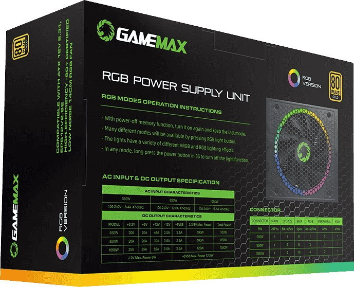 Блок питания Gamemax RGB Smart RGB-1050