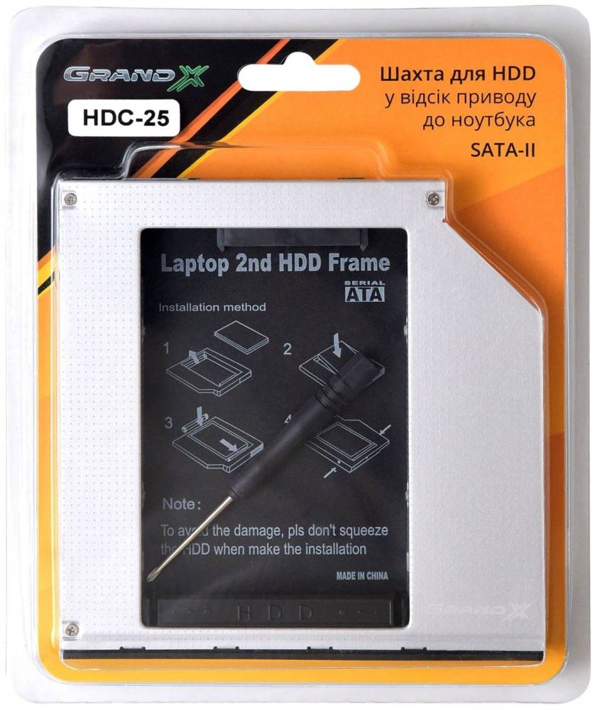 Фрейм-перехідник Grand-X HDD 2.5 to notebook 12.7 mm ODD SATAmSATA HDC-25 (HDC-25)