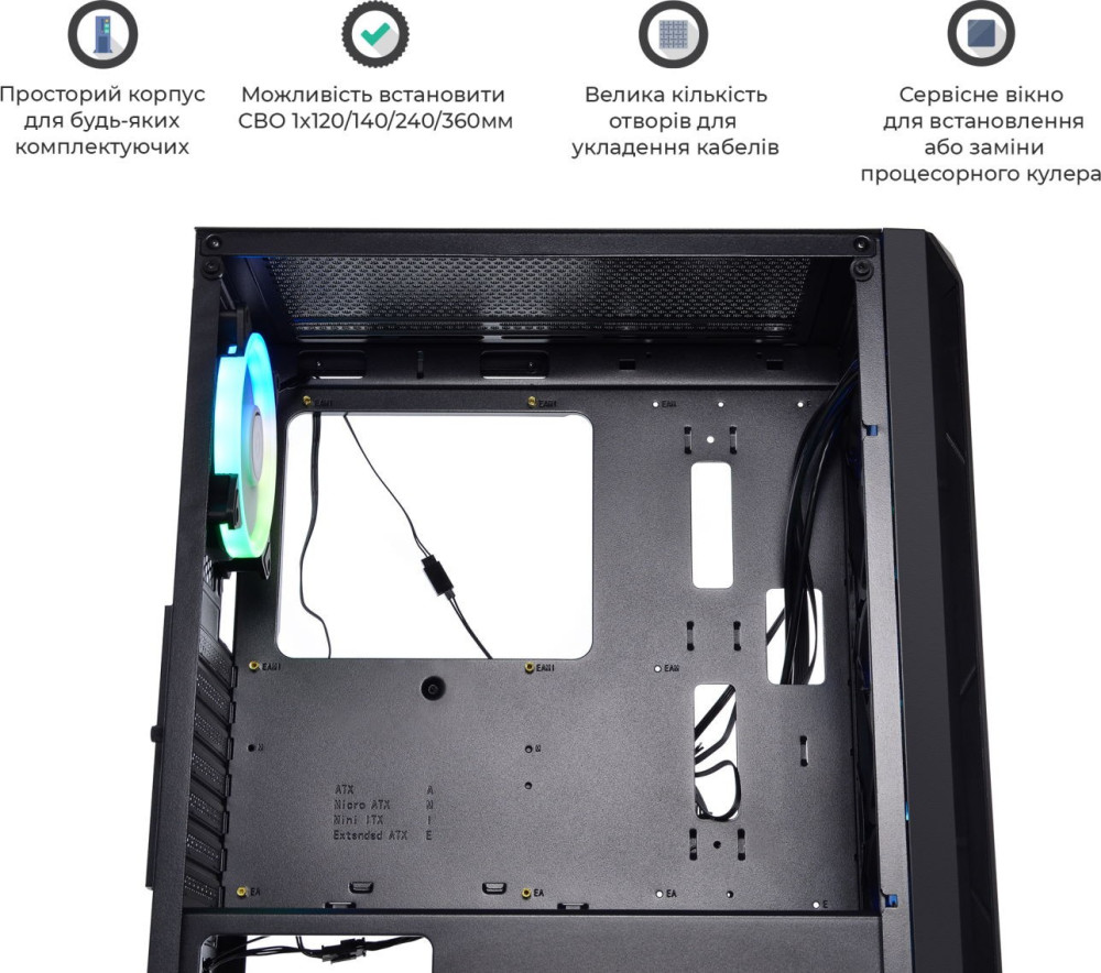 Мест для вентиляторов спереди - 3x120мм,