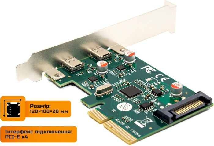 Плата розширення Frime PCI-E to USB3.1 TYPE-C (2 порти) ASM1142 (ECF-PCIEtoUSB010.LP)