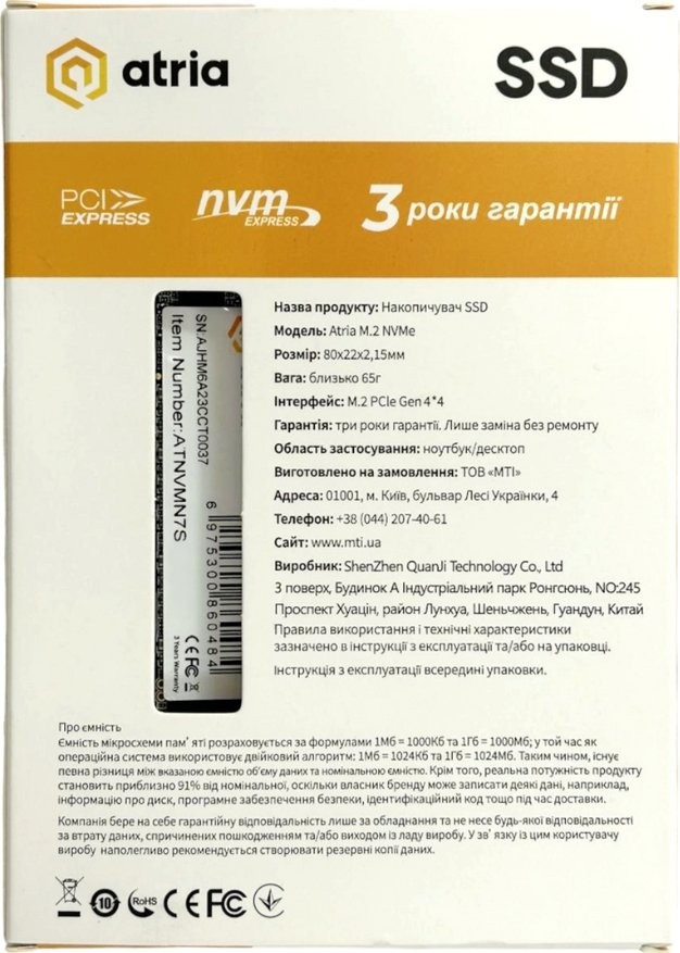 SSD ATRIA N7S ATNVMN7S/1024 1 ТБ