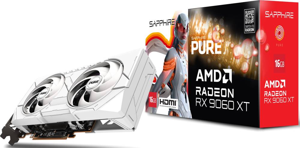 Видеокарта Sapphire Radeon RX 9060 XT PURE 16GB (11350-02-20G)
