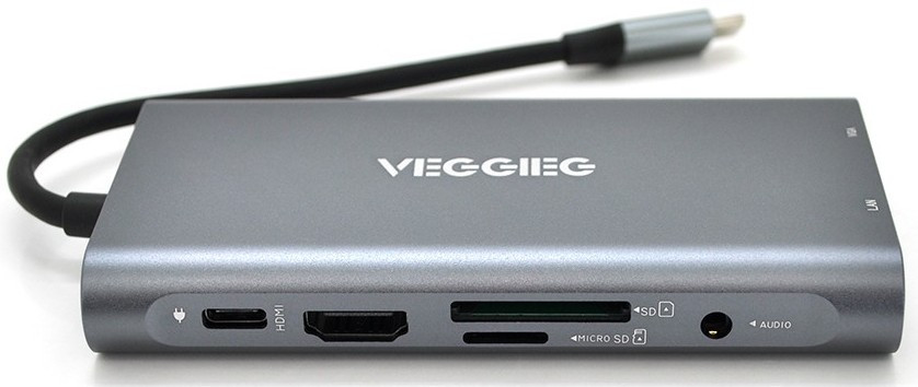 Хаб-конвертор VEGGIEG TC10-U Type-C на Type-C + USB3.0 3 + HDMI + VGA + SD TF + RJ45