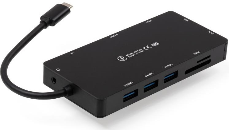 Концентратор Vinga USB-C 3.1 to VGA+HDMI+RJ45+3xUSB3.0+USB2.0+SDTF+PD+Audio (VHYC10)