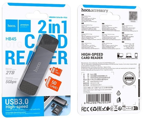 Кардридер — зчитувач карт памяті Hoco HB45 Spirit 2-in-1 — Type-C і USB 3.0