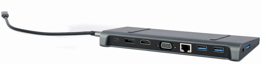Док-станція Cablexpert USB-C 9-в-1 (A-CM-COMBO9-02) USB-хаб + HDMIVGAPDLAN3.5-мм аудіо