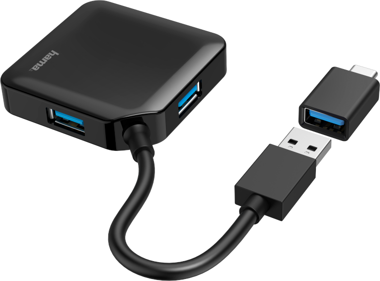 Концентратор HAMA 4 Ports USB 3.2, USB-C Adapter Black (00200116)