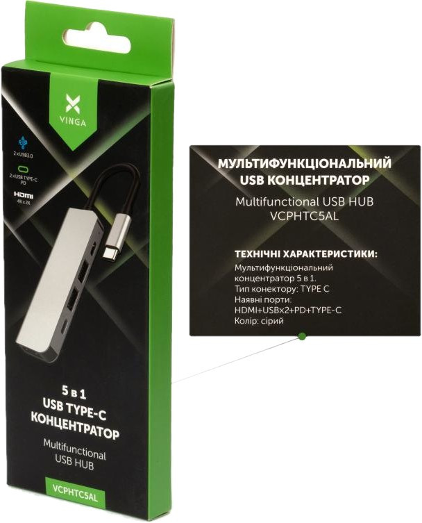 USB-хаб Vinga VCPHTC5AL