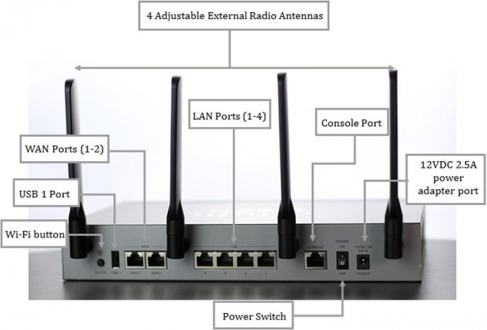 Вход данных (WAN-port) - Ethernet (RJ45) 3G модем (USB) 4G (LTE) модем (USB),