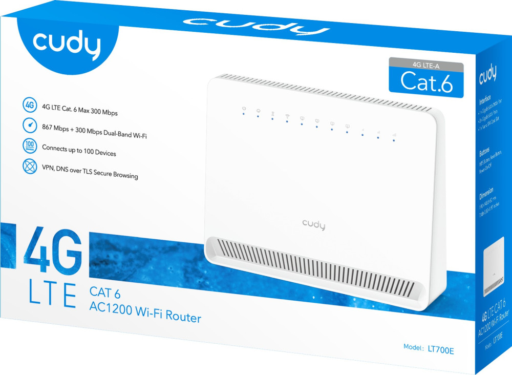 Маршрутизатор Cudy LT700E, AC1200 Wi-Fi 4G LTE-Cat6 Gigabit Router (LT700E)
