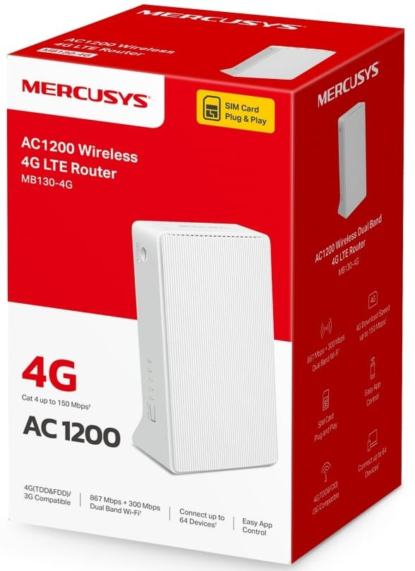 Mercusys Маршрутизатор MB130-4G AC1200, 4GLTE, 1xFE LAN, 1xFE WAN