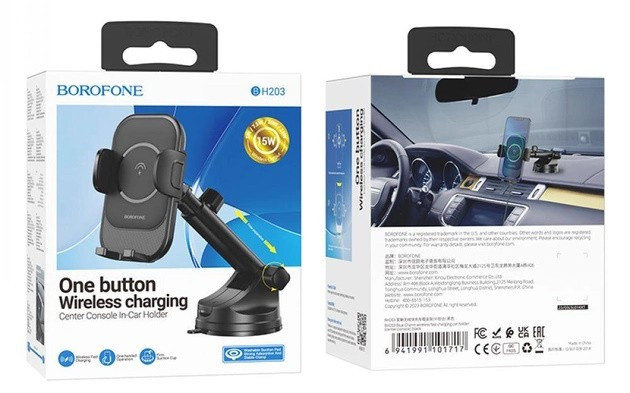 Авто зарядное беспроводное + держатель Borofone BH203 Blue Charm Wireless 15W
