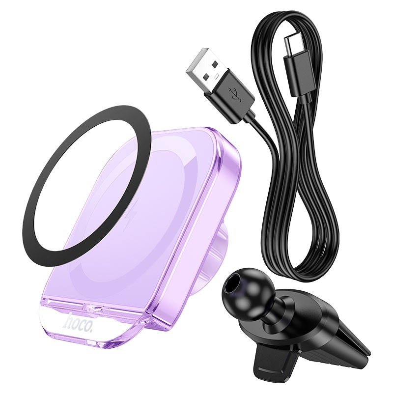 Автотримач із бездротовим заряджанням магнітної Hoco HW17 Wireless Charging with MagSafe фіолетовий