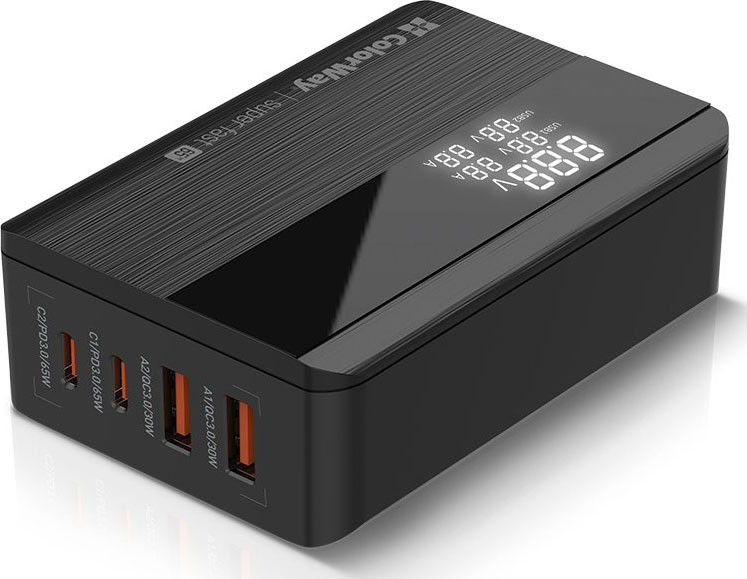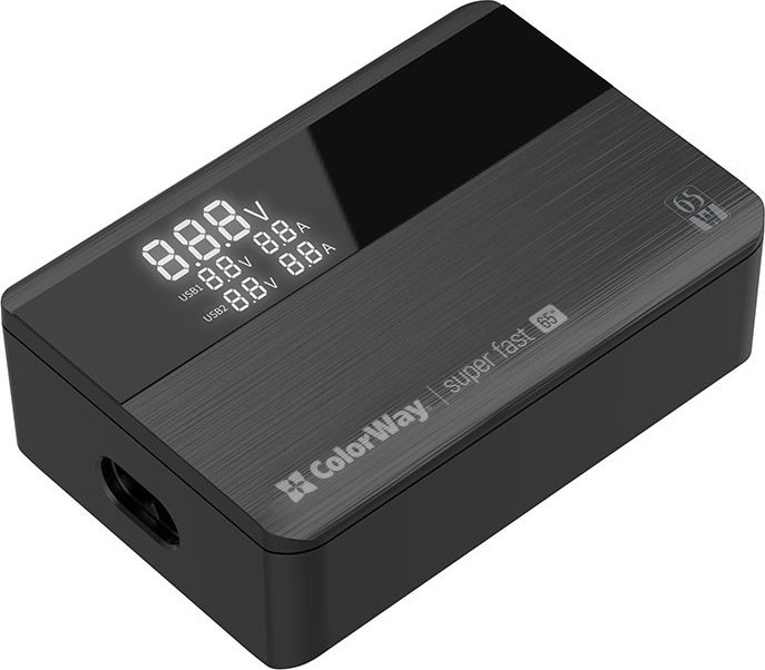 Зарядний пристрій ColorWay Power Delivery (2USB-A + 2USB TYPE-C) (65W) black (CW-CHS040PD-BK)