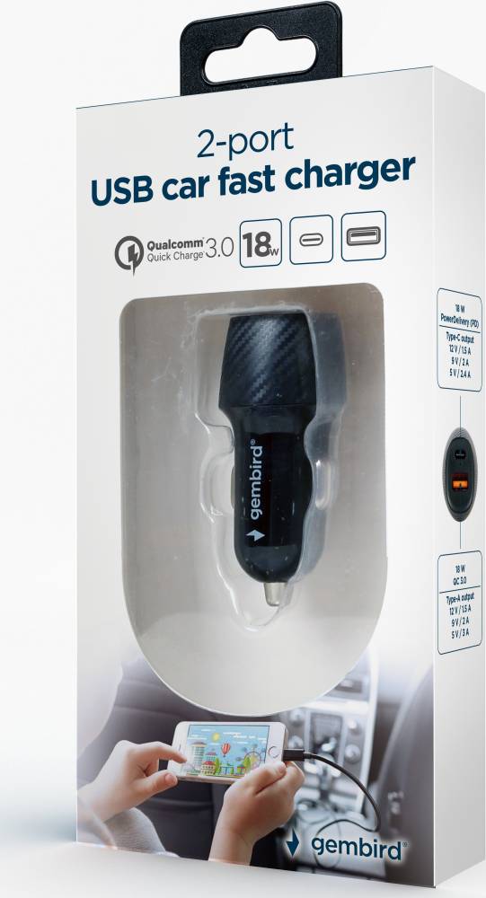 Зарядное устройство Gembird TA-U2QC3-CAR-02