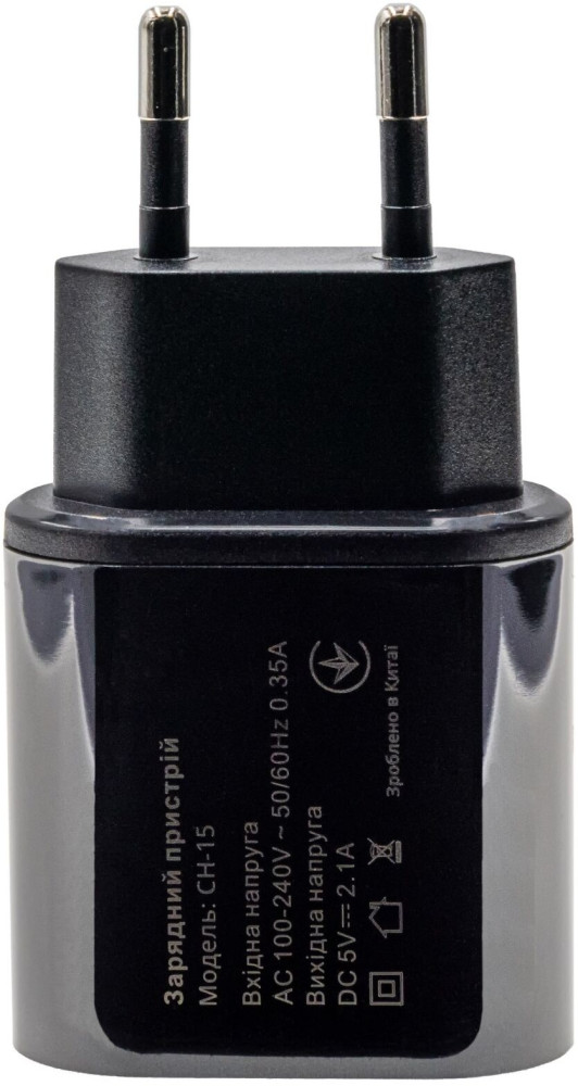Зарядний пристрій Grand-X 5V 2,1A Black + cable USB-Lightning (CH15LTB)