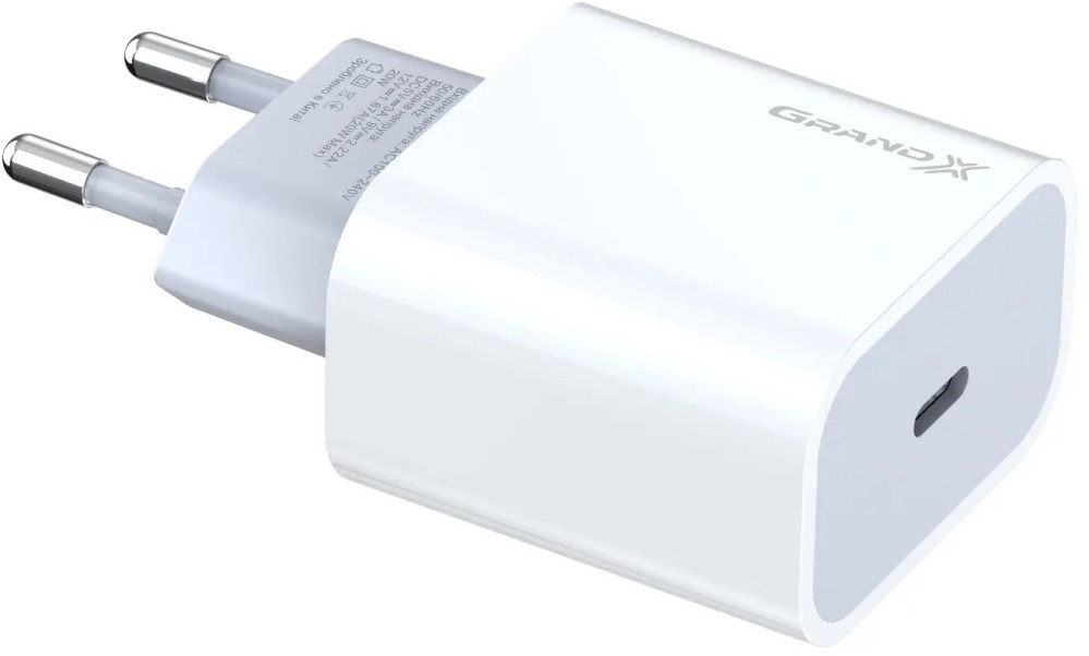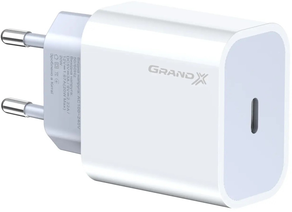 Мережевий зарядний пристрій Grand-X (1xUSB-C 20W) QC4.0, PD 3.0, FCP, AFC White (CH-770)