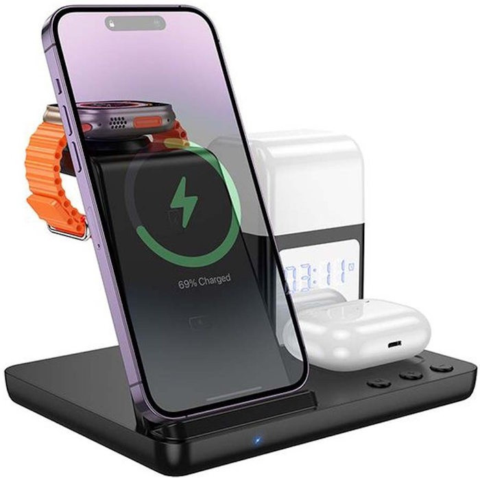 беспроводная зарядка / + ночник и часы /